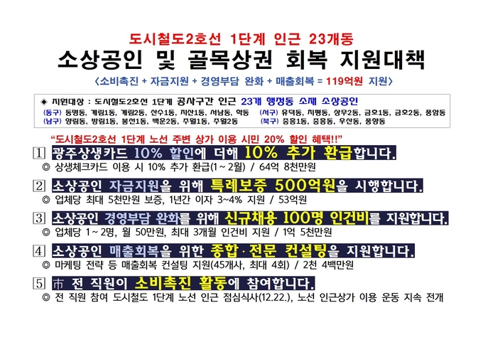 [광주광역시 도시철도 2호선 1단계 인근 소상공인 및 골목상권 회복 지원대책 안내]