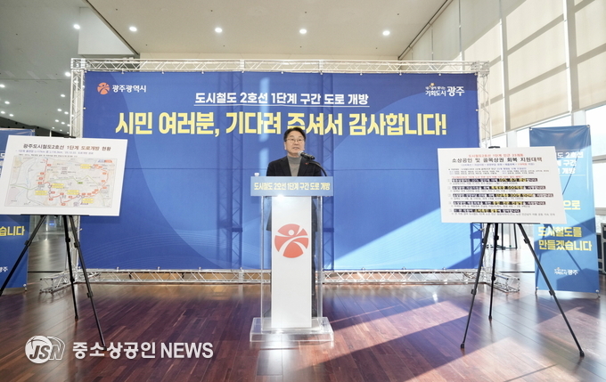 이 같은 정책 발표는 이날 광주광역시(시장 강기정)가 시청 시민홀에서 개최한 ‘광주도시철도 2호선 1단계 구간 도로개방 현장 확인’ 행사에서 이뤄졌다. 광주시는 이 자리에서 그동안의 공사 추진 경과와 현재 공정 현황, 향후 계획을 시민들과 공유했다.