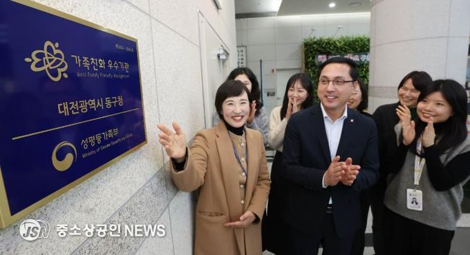 대전 동구는 성평등가족부가 주관하는 ‘가족친화우수기관’ 재인증을 통과함에 따라, 청사 내 현판 교체식을 진행했다고 24일 밝혔다.