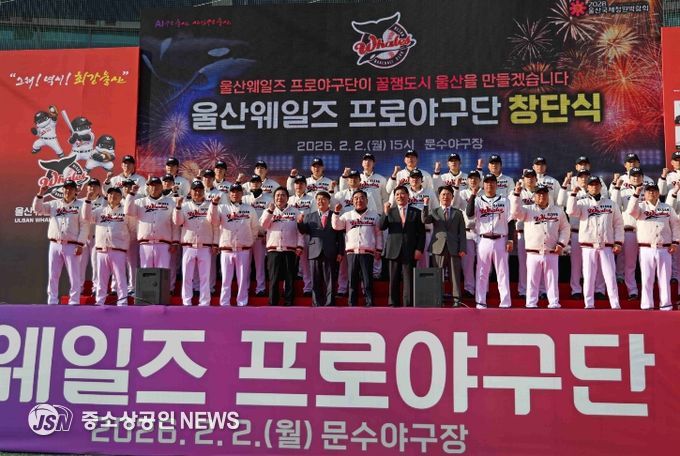 울산광역시(시장 김두겸)는 2월 2일(월) 울산 문수야구장에서 '울산 웨일즈' 공식 창단식을 개최했다.