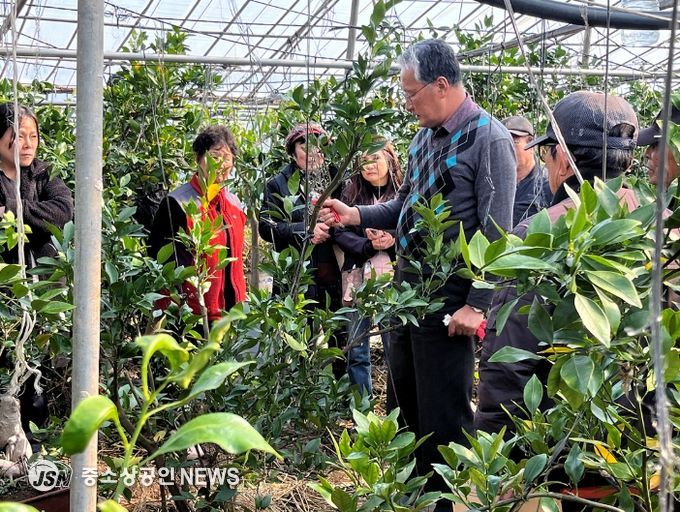 이번 교육은 만감류(레드향)와 감 재배 농가를 대상으로 농가 포장에서 직접 실습하는 방식으로 진행된다.
