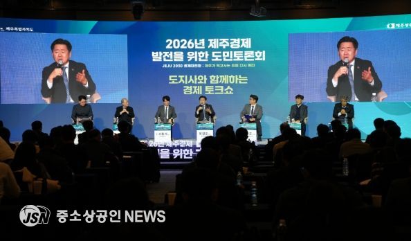 제주도와 제주상공회의소는 9일 오후 2시 한라컨벤션센터에서 ‘2026년 제주경제 발전을 위한 도민토론회’를 열었다.