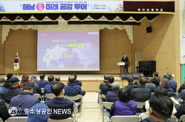 한편 해남군‘해남愛 미래 공감 투어’는 2월 10일 옥천면을 시작으로, 11일 송지면, 12일 마산면, 25일 황산면, 26일 삼산면, 3월 4일 북평·북일면, 5일 화원면, 10일 계곡면, 20일 산이면, 24일 화산면, 25일 해남읍·문내면, 26일 현산면 순으로 개최된다.