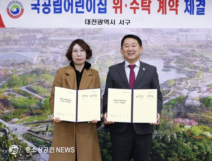 대전 서구는 지난 25일 구청 갑천누리실에서 예그랑어린이집과 국공립어린이집 위·수탁계약을 체결했다.