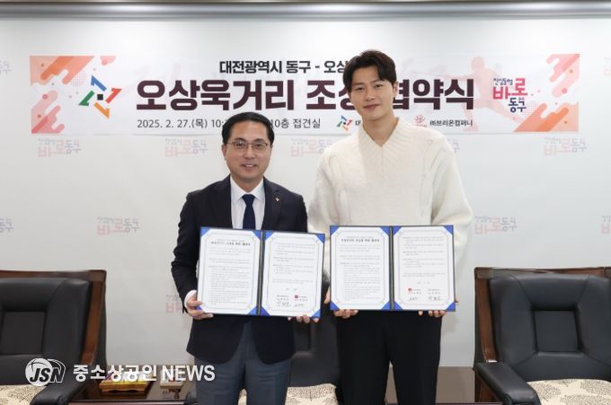 대전 동구는 27일 국가대표 펜싱선수 오상욱 선수와 업무협약(MOU)을 체결하고, 대전대학교 대학로 일원에 ‘오상욱 거리’ 명예도로를 조성한다고 밝혔다.