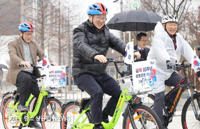 이장우 대전시장은 3월 1일 삼일절을 맞아 엑스포시민광장 일원에서 열린 ‘3.1절 자전거 대행진 행사’에 참석해 시민들과 함께 라이딩을 하며 3.1운동의 숭고한 의미를 되새겼다.
