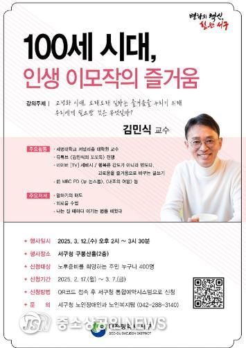 대전 서구는 3월 12일 신중년을 대상으로 ‘100세 시대, 인생 이모작의 즐거움’을 주제로 노후 준비 지원 특강을 개최한다.