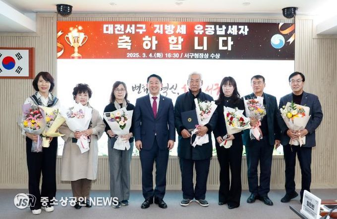 대전 서구는 제59회 납세자의 날을 맞아 이달 4일 지방세를 성실히 납부하여 지방재정 확충에 공헌한 개인 10명과 법인 2개소를 지방세 유공납세자로 선정하고 표창을 수여했다.