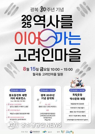 광산구 관계자는 “광복 80주년을 맞아 고려인마을을 중심으로 독립운동의 정신을 기억하고 역사적 가치를 경험할 수 있는 시간을 마련했다”며 “다양한 세대와 국적을 아우르는 콘텐츠로 뜻을 깊이 새길 수 있도록 구성했다”고 전했다.