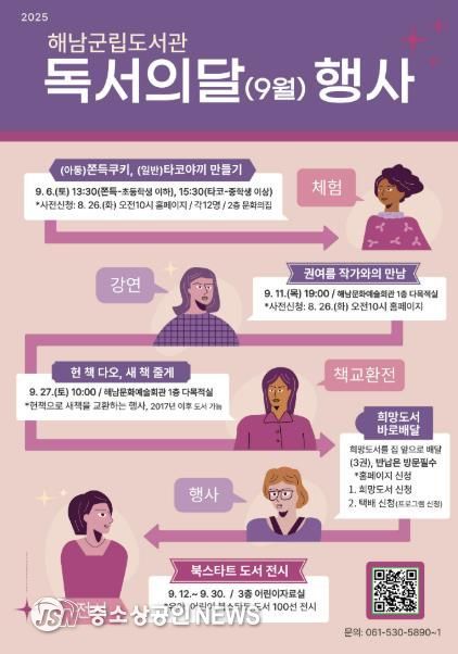 해남군립도서관에서는‘독서의 달’을 맞아 군민들이 일상속에서 독서의 즐거움을 느낄수 있도록 풍성한 독서문화행사를 갖는다.