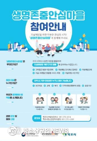 목포시는 ‘생명존중 안심마을’ 사업을 본격 추진하기 위해, 사업 참여기관 및 단체를 모집한다.