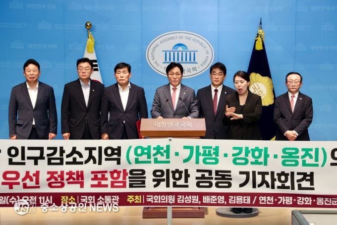 기자회견에 참석한 해당 지역 국회의원 및 군수들은 “강화, 옹진, 가평, 연천 4개 군은 수도권정비계획법상 수도권이라는 이유만으로 그동안 각종 정부 지원 정책에서 배제됐고, 현 정부에서 추진하는 지방 우선 정책에서도 배제되고 있다”면서 “인구감소지역이자 접경지역으로 겪는 열악한 현실과 재정상황을 감안하지 않은 이러한 정책 추진은 국가균형발전 및 지방소멸 극복이라는 국가정책의 근본 취지에도 위배된다”고 호소했다.