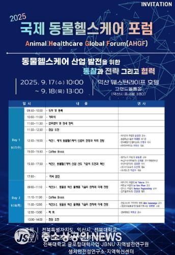 익산시는 오는 17일부터 18일까지 이틀간 웨스턴라이프 호텔에서 '2025 글로벌 동물헬스케어 포럼'을 개최한다고 11일 밝혔다.