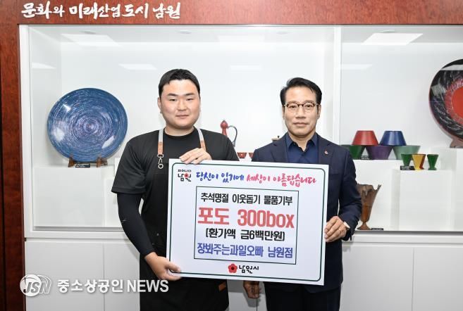 최경식 남원시장은 “장봐주는과일오빠 남원점이 추석 명절을 맞아 취약계층을 위한 기부를 이어가고 있는 점에 깊은 감사의 말씀을 드린다”라면서 “이와 같은 상생 정신은 남원의 복지 향상에 큰 도움이 되고 있다. 앞으로도 지역 경제와 사회의 발전을 위해 함께 협력해 나가기를 바란다”라고 전했다.