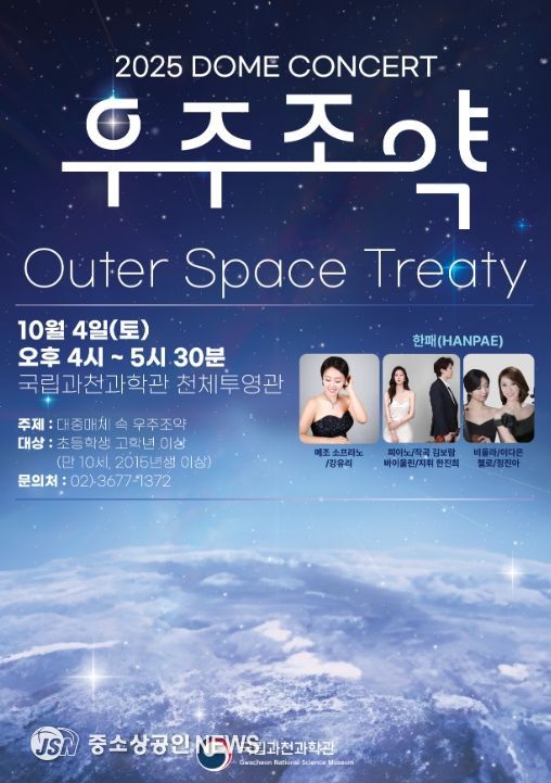 과학기술정보통신부 국립과천과학관은 세계 우주 주간을 맞아 오는 10월 4일 오후 4시, 천체투영관에서 돔 토크 콘서트 '대중매체 속 우주 조약'을 개최한다고 밝혔다.