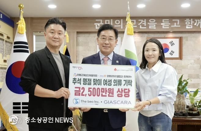 전진선 양평군수는 “소중한 물품을 후원해 주신 더베오와 지아스카라에 깊이 감사드린다”며 “이러한 선한 영향력이 많은 기업과 지역사회에 큰 울림이 되어, 지역 곳곳에 희망과 온정을 전하는 원동력이 되길 기대한다”고 화답했다.