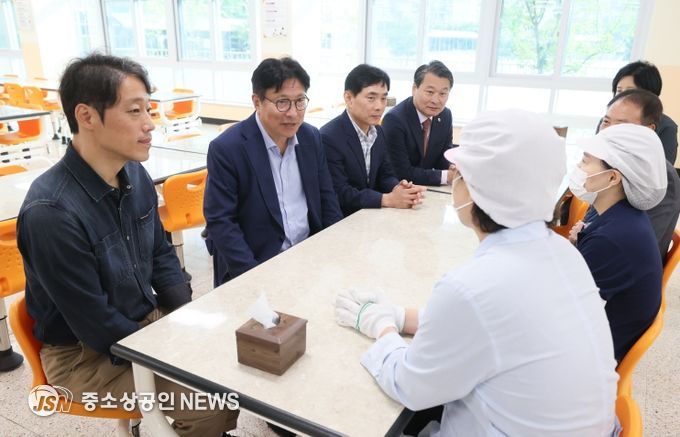 도성훈 교육감은 급식실 바닥, 사다리 등 추락 및 넘어짐 사고 우려가 있는 위험 시설의 안전조치 상태와 보호구 착용 실태를 직접 확인하고 현장 근로자들의 의견을 청취했다.