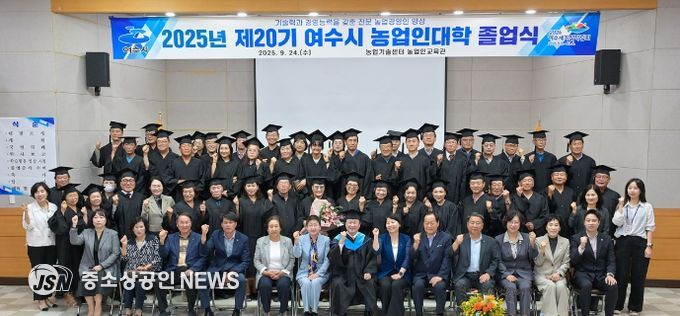 여수시는 지난 24일 농업기술센터 농업인교육관에서 ‘2025년 농업인대학 졸업식’을 열고 60명의 졸업생을 배출했다고 밝혔다.