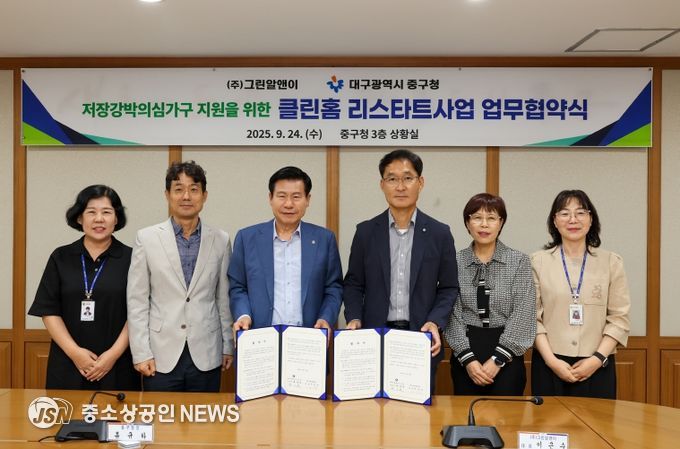 대구 중구와 ㈜그린알앤이(대표 이근수)는 24일 저장강박의심가구 주거환경 개선과 복지안전망 강화를 위한 ‘클린홈 리스타트 사업’ 업무협약을 체결했다.