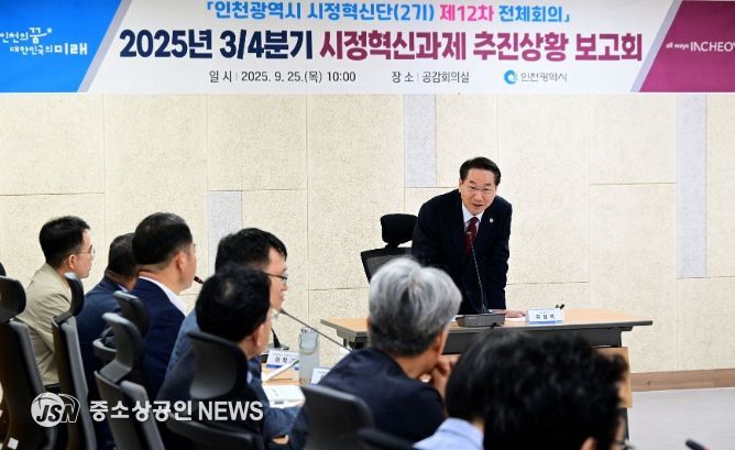 인천광역시는 9월 25일 시청 공감회의실에서 ‘2025년 3/4분기 시정혁신과제 추진상황 보고회’를 개최했다고 밝혔다.