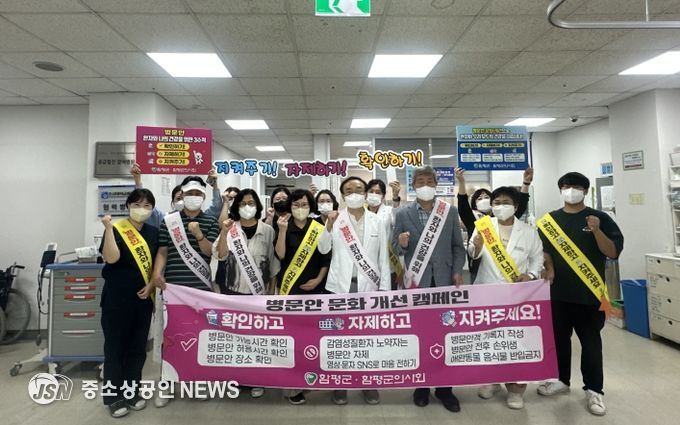 캠페인에서는 ▲병문안 장소 관리 ▲손소독제 비치 여부 ▲면회객 동선 통제 등 병문안 시스템을 점검하고, ‘확인하기, 자제하기, 지켜주기’ 등 병문안 3대 실천 수칙을 담은 홍보 포스터와 안내문을 배부했다.