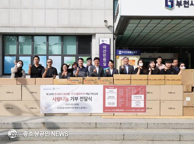 부천시는 지난 25일 삼정동에 소재한 무선통신 제조기업 ㈜와치캠을 비롯한 7개 업체가 삼정종합사회복지관 내 ‘온(溫)편의점’에 후원물품을 기탁했다고 밝혔다. 이번 후원은 추석 연휴를 맞아 복지 사각지대 시민들을 위한 마음 돌봄 공간 운영을 지원하기 위해 마련됐다.