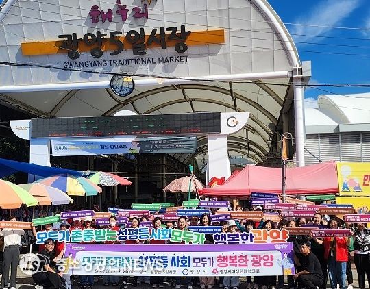 광양시는 지난 9월 26일 광양시 여성단체협의회(회장 황호순)가 광양읍 5일장에서 ‘양성평등 인식 확산 캠페인’을 진행했다고 밝혔다.