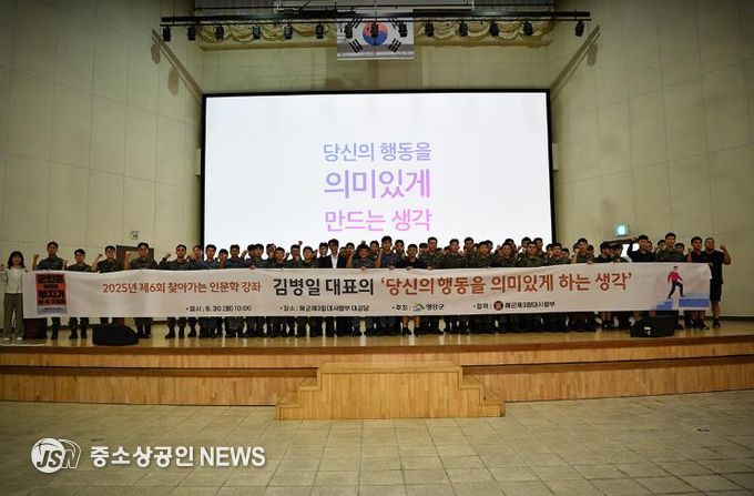 김병일 출판사 드림벙커 대표는 ‘당신의 행동을 의미 있게 하는 생각’을 주제로 장병들이 일상 선택·행동을 바탕으로 삶의 가치를 높이는 방법을 전했다.