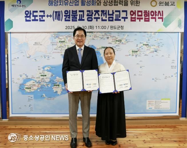 완도군이 완도 해양치유산업 활성화를 위해 (재)원불교 광주전남교구와 업무 협약을 체결했다.