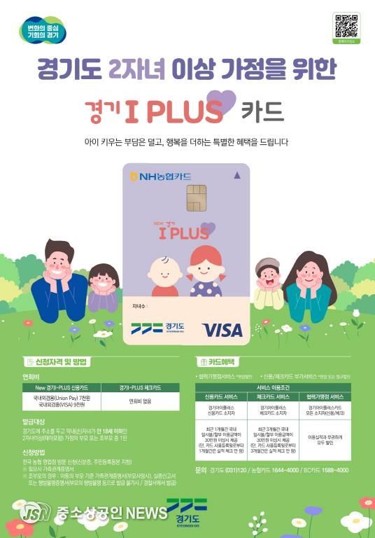 경기 아이플러스 카드는 2자녀 이상 다자녀가정에 다양한 경제적 혜택과 문화생활을 지원하기 위해 경기도와 농협, BC카드가 협력해 운영하는 사업이다.