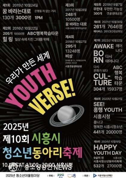 10주년을 맞은 시흥시청소년동아리축제가 오는 10월 18일 시흥시청에서 개최된다. ‘우리가 만든 세계: YOUTHVERSE’를 주제로 열리는 이번 축제는 지난 10년간의 활동을 돌아보는 동시에 앞으로 축제가 나아가야 할 길을 내다보는 전환점이 될 것으로 보인다.