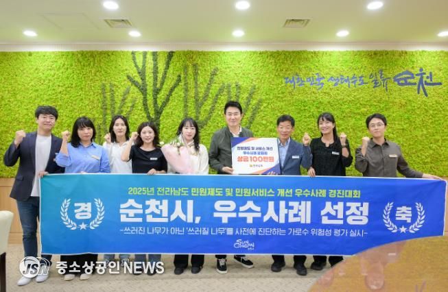 순천시가 전라남도 도민행복소통실에서 주관한 '2025년 민원제도 개선 우수사례' 공모에서 우수사례로 선정되어, 지난 1일 시상식 및 사례발표를 진행했다.