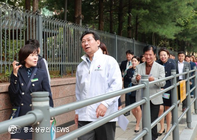 이 시장은 학부모들과 함께 통학로 주변을 둘러보며 시설을 점검하면서 ▲대청초 후문 좁은 인도에 풀이 우거져 보행을 방해하는 화단과 파손된 보도블록 정비 ▲인도와 차도의 경계가 없는 구간 볼라드 설치 ▲진흥더블파크 옆 가파른 경사와 급커브 구간 방지턱 추가 설치 ▲학교 주변 일부 보도블럭 교쳬 등을 지시했다.