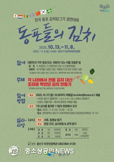 광주 광산구가 13일부터 11월 18일까지 전국 곳곳에 거주하고 있는 동포들을 대상으로 ‘전국 동포 김치담그기 경연대회_동포들의 김치’를 개최한다.