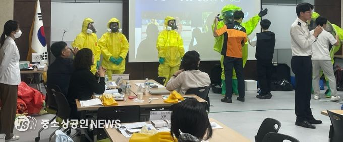 훈련은 ▲생물테러 대응 이론 교육 ▲개인보호복(레벨 A, C) 착·탈의 실습 ▲다중탐지키트 사용법 ▲현장활동 계획 수립 및 위험구역 설정 등 실습 위주로 진행됐다.