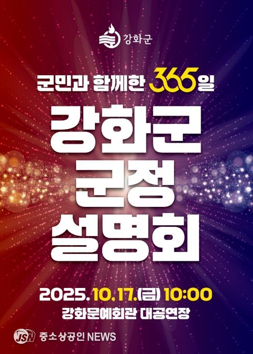 강화군은 오는 10월 17일 오전 10시 강화문예회관에서 “군민과 함께한 365일, 강화군 군정 설명회”를 개최한다.
