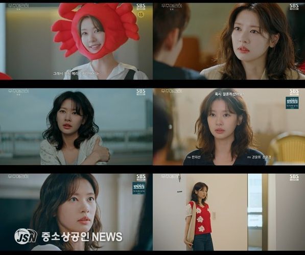 지난 10일(금), 11일(토) 방송된 SBS 금토드라마 ‘우주메리미’(극본 이하나/ 연출 송현욱, 황인혁) 1, 2회에서 정소민은 최고급 신혼집이라는 경품을 사수하기 위해 전 약혼자와 동명이인에게 가짜 남편이 되어 달라고 제안하는 생계형 디자이너 유메리 역을 맡아 열연을 펼쳤다.