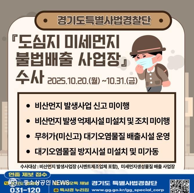 이번 수사는 미세먼지 농도가 증가하는 겨울철을 앞두고 건설공사현장 및 시멘트 제조업체, 대기배출시설 등에서의 불법적인 미세먼지 배출 행위를 사전 차단하기 위한 선제적 조치다. 미세먼지는 폐 깊숙이 침투해 호흡기와 심혈관 질환을 유발할 수 있는 1급 발암물질로 특히 어린이, 노약자는 장기간 노출될 경우 폐 기능 저하, 기관지염, 심근경색, 뇌졸중 위험 증가 등 심각한 건강 피해를 입을 수 있다.