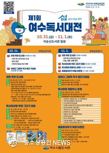 시 관계자는 “이번 독서대전이 여수를 대표하는 독서문화 축제로 자리 잡아 시민은 물론 관광객들도 함께 즐기는 문화행사로 발전하길 바란다”며 “전국에 여수시립도서관과 2026여수세계섬박람회를 홍보하는 계기가 되길 기대한다”고 말했다.