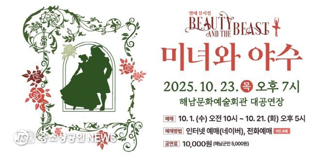 해남군은 오는 10월 23일 오후 7시 해남문화예술회관 대공연장에서 발레뮤지컬 ‘미녀와 야수’공연을 선보인다.