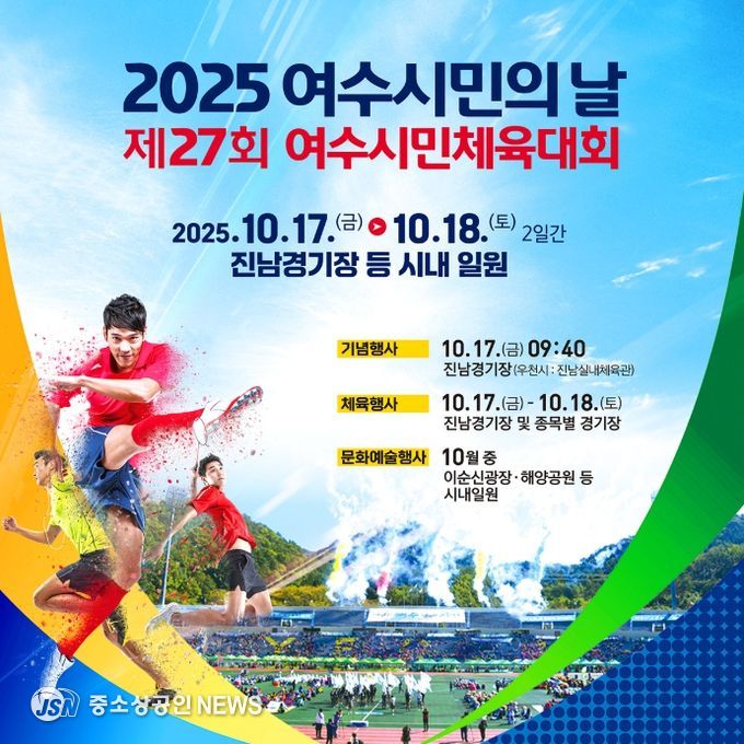 여수시는 오는 10월 17일(금)부터 18일(토)까지 이틀간 진남경기장 일원에서 ‘2025 여수시민의 날’ 기념행사를 개최한다.