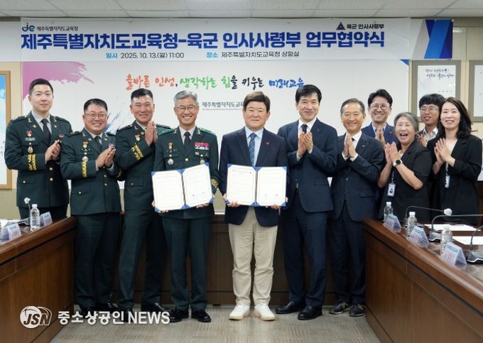 제주특별자치도교육청은 13일 도교육청 상황실에서 육군 인사사령부와 고등학생들의 진로 탐색 기회 확대를 위한 업무협약을 체결했다.