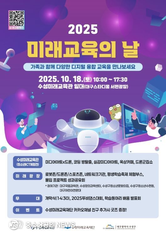 수성미래교육재단)이 주최하고 수성미래교육관이 주관하는 ‘2025 미래교육의 날’ 행사가 오는 18일 수성미래교육관 일대 대구스타디움 서편광장에서 개최된다.