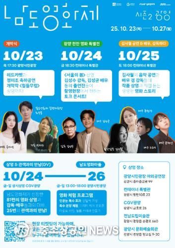[남도영화제 시즌2 광양]은 10월 23일부터 27일까지 CGV광양, 전남도립미술관, 광양시문화예술회관, 광양시민광장, 컨테이너 특별관(스타인벡코리아 광양항) 등 광양시 일대에서 열린다.