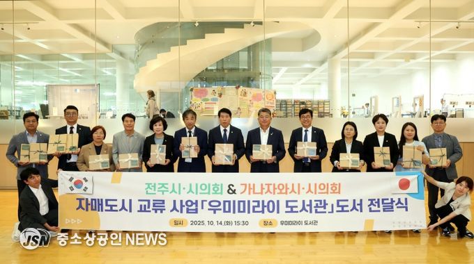 전주시의회는 지난 14일 일본 가나자와시 우미미라이 도서관에서 자매도시 교류 사업 도서 전달식을 가졌다고 15일 밝혔다.