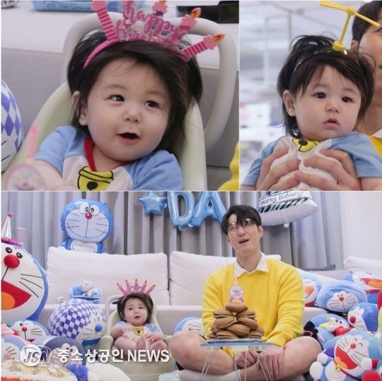 하루는 생일 축하 노래에 맞춰 박수를 짝짝 치며 환한 미소를 지어 보는 이들의 심장을 사르르 녹인다. 최지우는 “하루에몽이가 제일 예쁘네요~”라며 하루에게서 눈을 떼지 못했다는 후문.