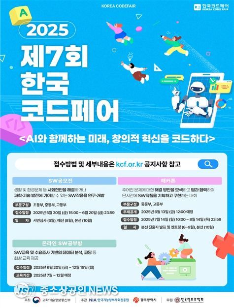 과학기술정보통신부는 광주광역시, 한국지능정보사회진흥원(원장 황종성)과 함께 청소년들의 인공지능(AI)·소프트웨어(SW) 학습 동기부여와 역량 강화를 위한 '제7회 한국코드페어' 본선 대회를 10월 17일과 10월 18일 양일간 김대중컨벤션센터(광주광역시 서구 소재)에서 개최한다.