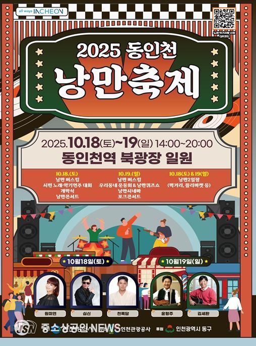 인천광역시는 오는 10월 18일부터 19일까지 이틀간 동인천역 북광장에서 ‘2025년 동인천 낭만축제’를 개최한다고 밝혔다.