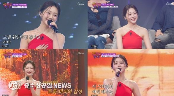 이날 '미스트롯2' 선(善) 출신 홍지윤은 레드 드레스를 입고 등장해 압도적인 비주얼과 함께 강렬한 존재감을 발산했다. 이어 '미스트롯2' 멤버들과 호흡을 맞춘 '서울 가 살자' 무대로 감탄을 자아내며 품격 있는 무대 매너를 보여줬다.