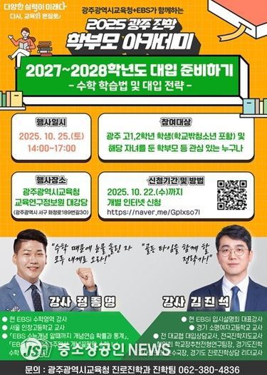 아카데미 참여를 희망하는 학생, 학부모는 오는 22일까지 광주진로진학지원센터 누리집을 통해 신청하면 된다. 당일 현장 접수도 가능하다. 특강은 행사가 끝난 후 EBSi 홈페이지에 탑재될 예정이다.